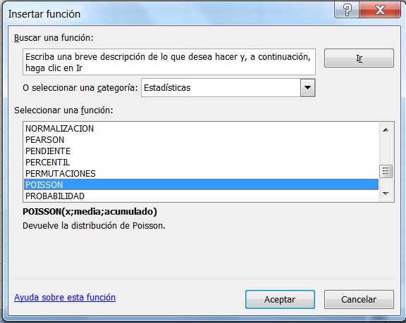 ste valor puede verificarse gracias a las funciones presentes en nuestra planilla de cálculo. Para ello, comenzamos seleccionando la función POISSON, como se observa en la imagen 5.12