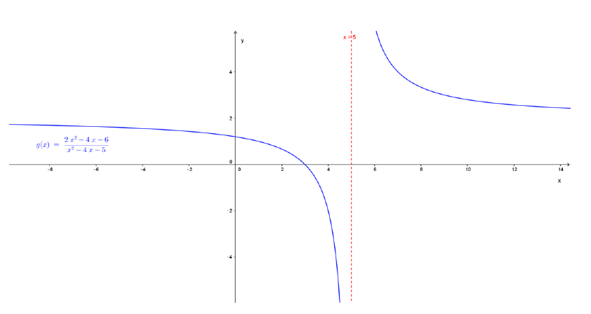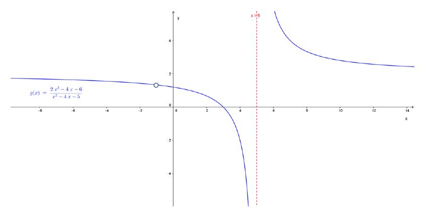 Construya el gráfico de la función \( g(x) = \frac {2x^2 - 4x - 6}{x^2 - 4x -5} \)