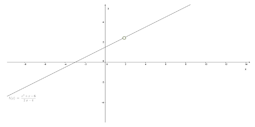 Encuentre el dominio y construya el gráfico de la función \( h(x) = \frac{x^2 + x - 6}{2x - 4} \)