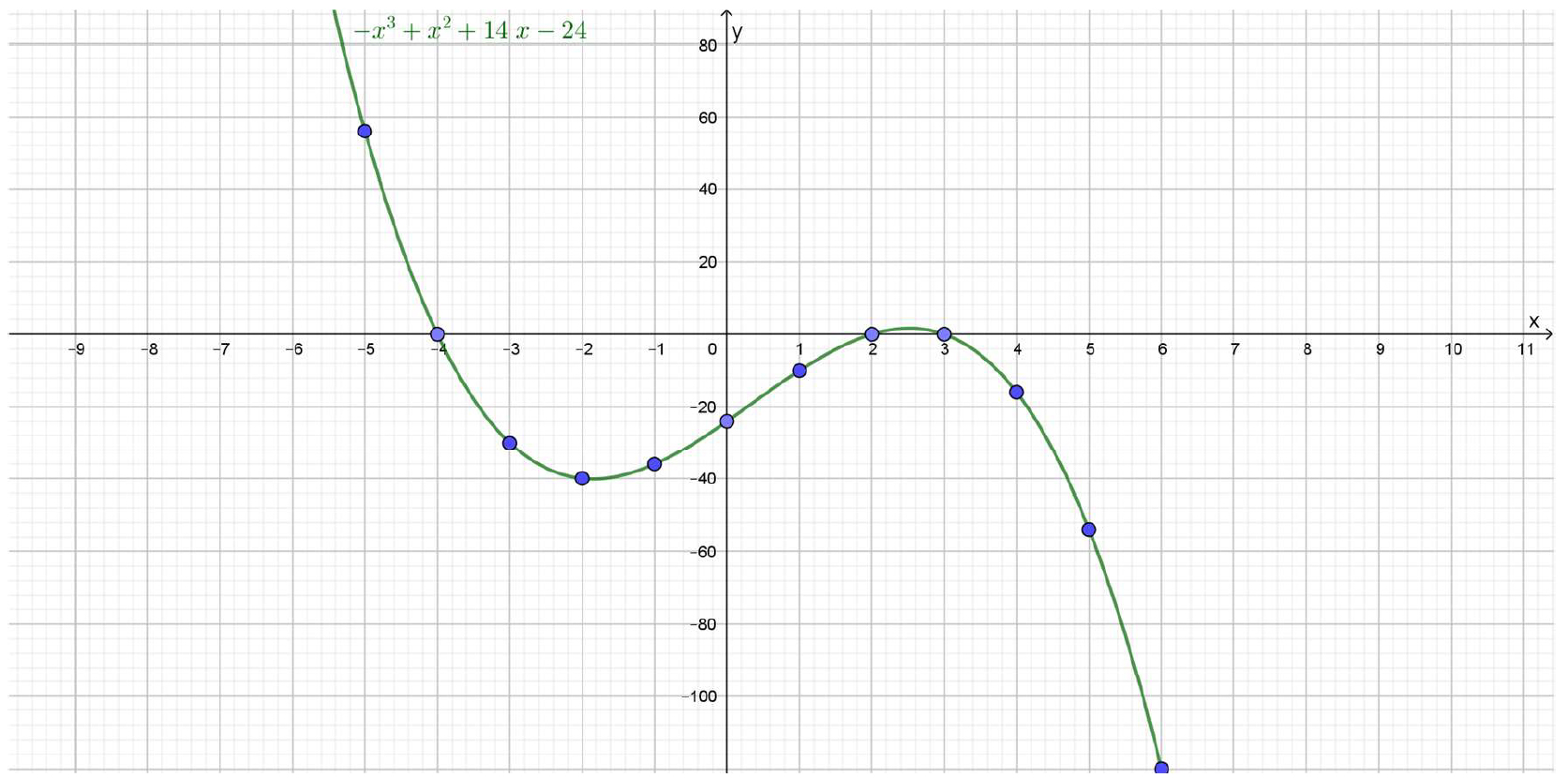 - \(g\left(x\right)=-x^4+2x^3+21x^2-22x+40\)